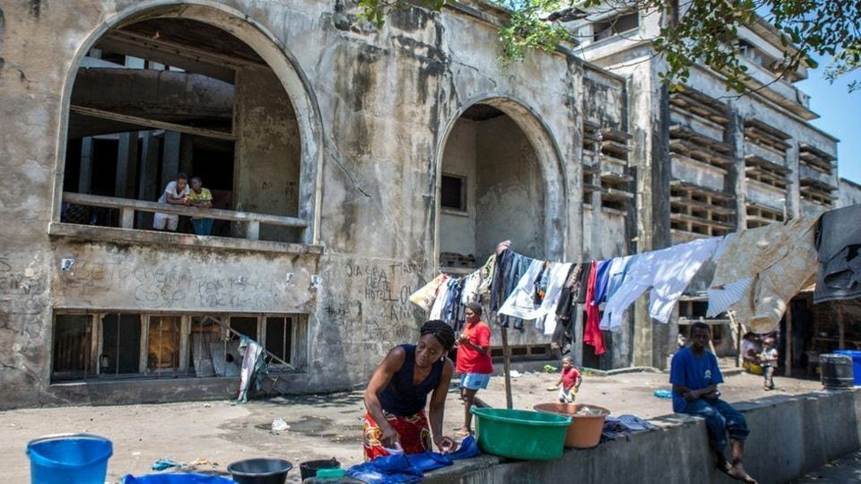Today the Grand Hotel still stands, but is in ruins and home to over 3500 squatters who have taken over this hotel and made it their home. The community that has grown within the weathered walls of this hotel, who span over three generations, have their own laws and internal elections to elect community leaders. Unfortunately the world inside the Grand Hotel is a sad one full of poverty and destitute. There are severe hygiene issues due to the years of rubbish that has accumulated and the lack of sewage facilities, with the main bar now being used as an urinal.