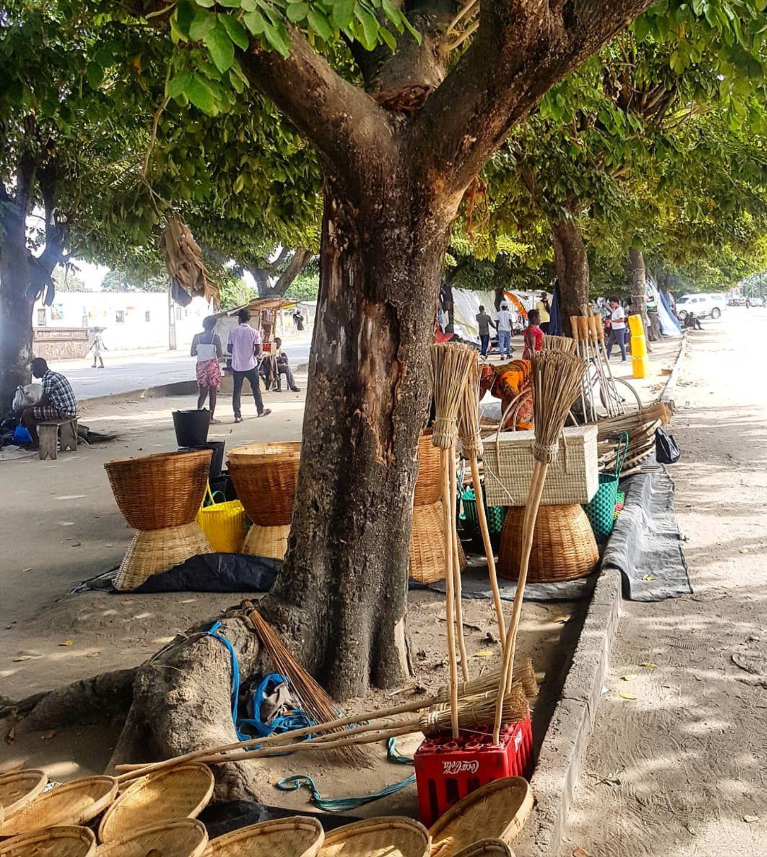 • Woven baskets are sold on the side of the road everywhere here. Why not buy a few, support the local community by doing so, and keep them in your car for the next time you buy your veggies on the side of the road or at the market.