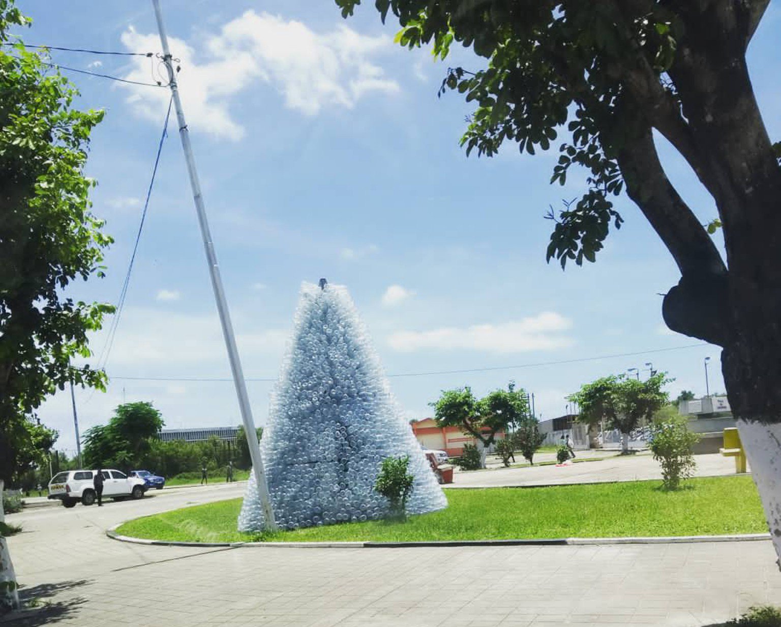 Plastic bottle Christmas trees around Beira, using recycled bottles